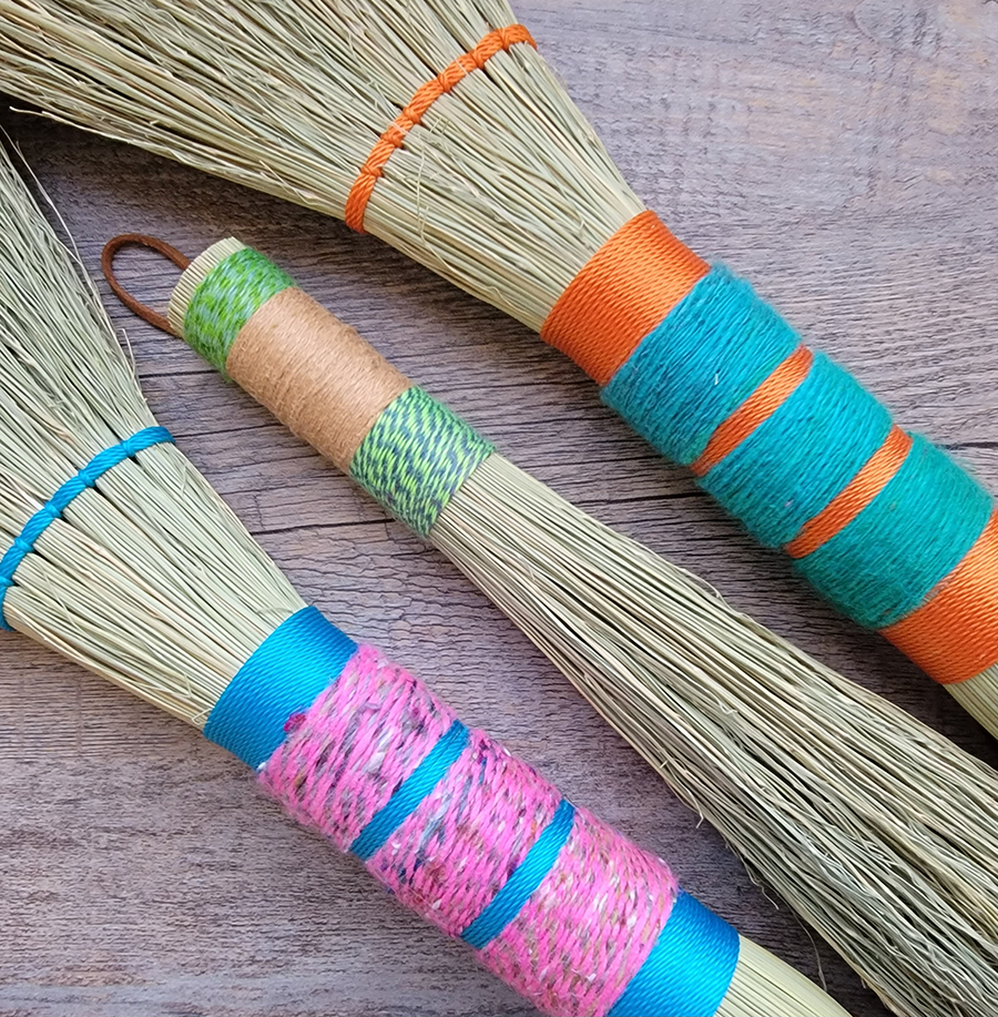 This class is a fantastic introduction to broom-making. Tying a broom is a stress-reducing, full body practice. You’ll use both feet to hold tension and both hands to manipulate the cord and wrap the broom tightly. The skills taught are relatively easy to master and they also set students up well for further broom making adventures.