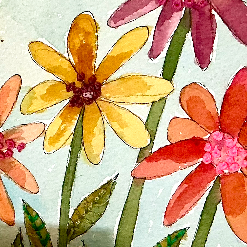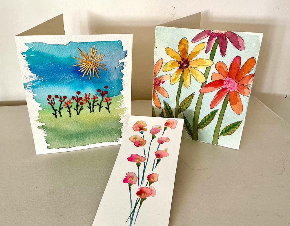 You’ll create a small embroidered watercolor artwork from our designs or one of your own, experiment with color, texture, and stitch techniques to bring your design to life. Basic embroidery stitches suited for paper will be explored (backstitch, French knots, running stitch, etc.) Whether you prefer abstract patterns, florals, or whimsical illustrations, this process adds depth and dimension to your work!