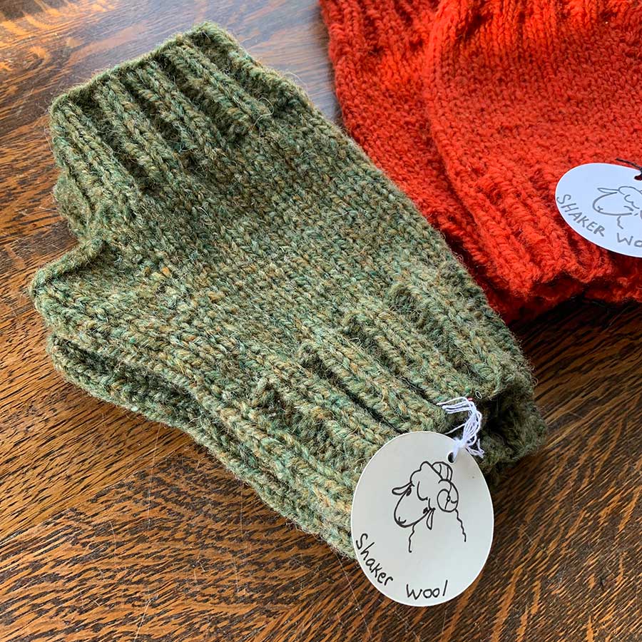Adult sized fingerless mittens made from Shaker Wool by neighbor and friend Susan Araujo.