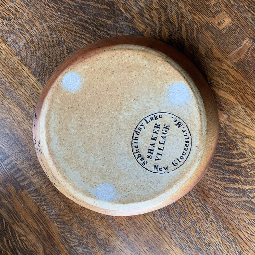 Laurel beautifully captured and composed this writing on her rustic and hefty pottery, glazed and wood fired to perfection. Hand-stamped on the bottom, this is a wonderful commemorative functional sculpture that helps support the work we are doing to preserve Shaker history while also working to preserve and share this history. $75 of each bowl is donated to the Herb House.